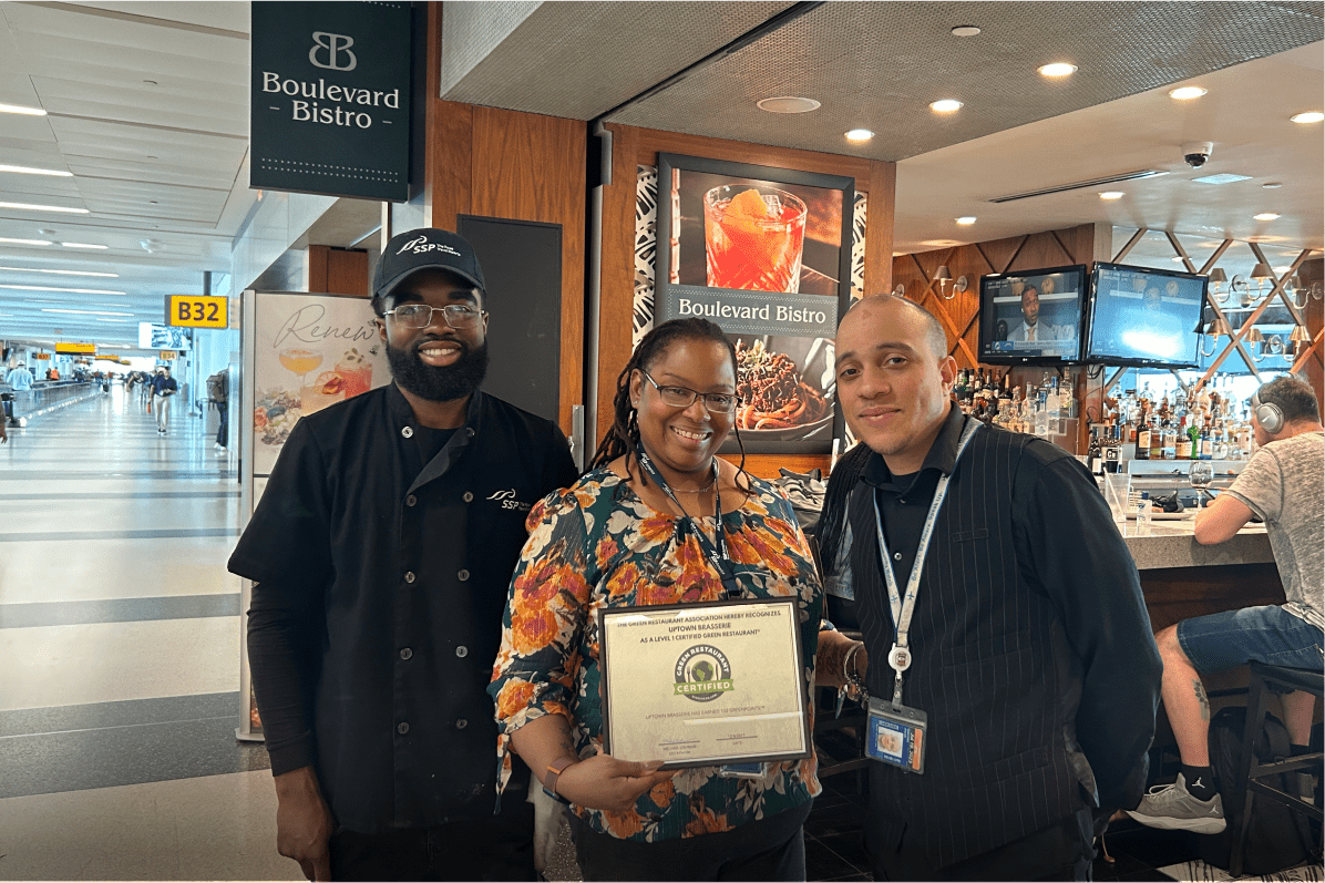 SSP America’s sustainability efforts at the John F. Kennedy International Airport are recognized by the Green Restaurant Association.